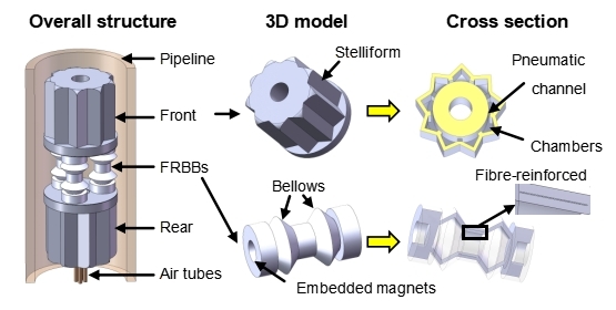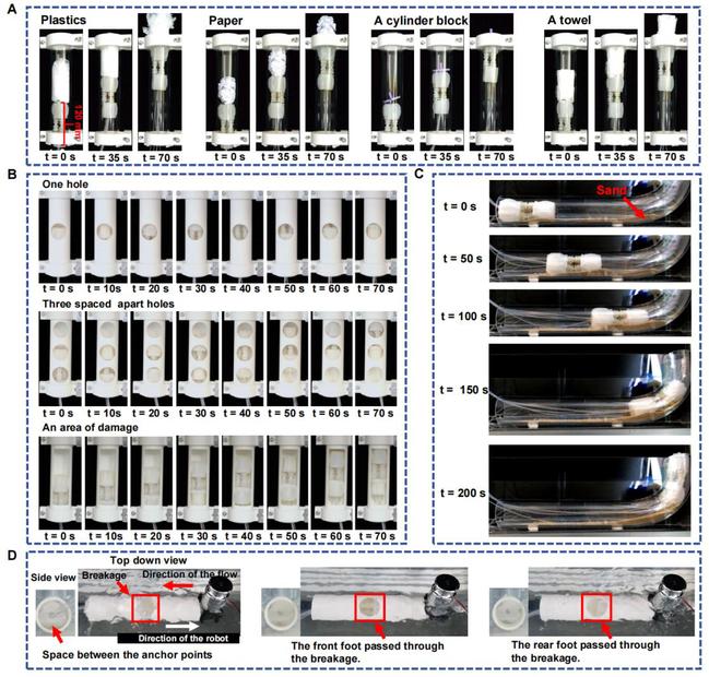 管道作为能源运输与城市运维的核心基础设施,其隐蔽性、复杂性给检测维护带来巨大挑战。传统刚性管道机器人结构复杂、控制难度大,在小管径、破损管道或动态水流等复杂工况下适应性受限;现有软体机器人虽具备灵活性优势,但普遍存在流阻大、负载能力弱、难以应对真实管道故障等问题。